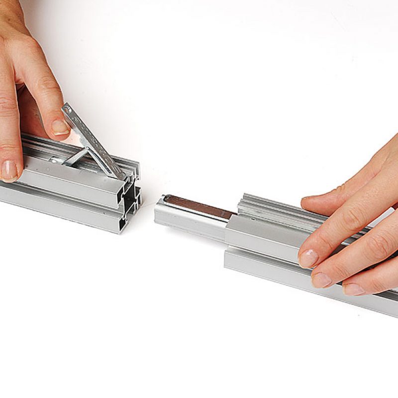 Modulene er delt opp i 100 cm lengder for enklere transport og montering. Den smarte løsningen ligger i sammenkobling av hjørner og skjøter med en patentert «Fast-Clamp» (hurtigkobling)løsning. Denne løsningen sparer mye tid både ved montering og demontering av standen. Ingen verktøy og ingen skruer! Alle vegger blir satt opp og testet med trykk før utsendelse som en ekstra garanti for våre kunder.